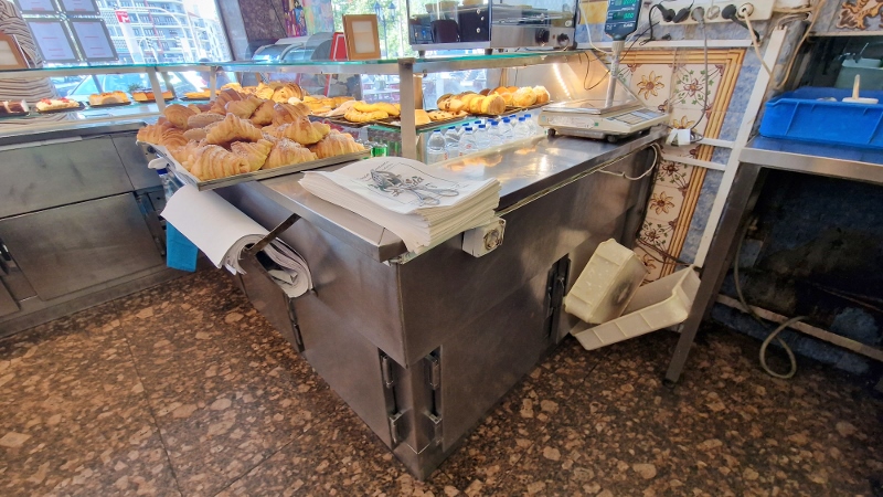 VERBA N.º 1 - UM FORNO DE PADARIA/ PASTELARIA EM INOX COM 5 CAMARAS MARCA REKENA E EUROFORNOS MODELO E6, GM 21B, GM25B SERIAL 3814, 3815, 2002/97-------VERBA N.º 2 - 1 SISTEMA DE EXAUSTÃO EM INOX (POR CIMA DO FORNO DE 5 CAMARAS) -------VERBA N.º 3 - 1 BANCADA EM INOX REFRIGERADA COM 3 PORTAS COM 1,90X0,80 COM TAMPO EM MARMORE-------VERBA N.º 4 - 1 AMASSADEIRA INDUSTRIAL SEM MARCA/MODELO VISIVEL-------VERBA N.º 5 - 1 FRITADEIRA EM INOX COM 1 ARMARIO SEM MARCA/MODELO VISIVEL-------VERBA N.º 6 - 1 BANCADA EM INOX COM LAVATORIO/PIA E 1 PRATELEIRA-------VERBA N.º 7 - 1 LAVATORIO EM INOX COM TORNEIRA-------VERBA N.º 8 - 1 CILINDRO DE AGUA QUENTE MARCA VULCANO, COR BRANCA-------VERBA N.º 9 - 1 BANCADA/ARMÁRIO EM INOX COM 3 GAVETAS E 2 PRATELEIRAS-------VERBA N.º 10 - 1 BANCADA EM INOX COM 4 GAVETAS E 2 PRATELEIRAS-------VERBA N.º 11 - 1 ARMARIO DE PAREDE EM INOX COM 3 PORTAS-------VERBA N.º 12 - 1 MESA EM INOX QUADRADA COM 2 PRATELEIRAS-------VERBA N.º 13 - 1 BANCADA BAIXA EM INOX COM 1 PRATELEIRA-------VERBA N.º 14 - 1 BALDE DO LIXO EM INOX COM TAMPA E PEDAL PARA ACCIONAR-------VERBA N.º 15 - 1 ARCA CONGELADORA HORIZONTAL CYCLOPENTANE, BRANCA-------VERBA N.º 16 - 1 MAQUINA DE LAVAR À PRESSÃO AMARELA MARCA KARCHER E ACESSORIOS-------VERBA N.º 17 - 1 AQUECEDOR ALTO, DE RUA, EM INOX MARCA JOCEL-------VERBA N.º 18 - 1 MAQUINA DE PICAR CARNE MARCA CGT (ITALY)------- VERBA N.º 19 - 1 BALANÇA DIGITAL MARCA "CAS"-------VERBA N.º 20 - 1 BANCADA EM INOX REFRIGERADA COM 3 PORTAS-------VERBA N.º 21 - 1 ARMÁRIO EM INOX EM ESQUINA COM 4 PORTAS-------VERBA N.º 22 - 1 ARMARIO DE REFRIGERAÇÃO MERCATUS EM INOX, VERTICAL DE 1 PORTA EXPOMAQUINA (FRIO 5)------- VERBA N.º 23 - 1 ARMÁRIO DE REFRIGERAÇÃO EM INOX, VERTICAL COM 6 PORTAS-------VERBA N.º 24 - UMA DESPENSA/ARMAZÉM COMPOSTO POR: _______ PRATELEIRAS/ESTANTES EM FERRO COM PRATELEIRAS EM FERRO/CHAPA, AJUSTÁVEIS; _______ 1 MOINHO DE CAFÉ COR VERMELHA; _______ 1 ARMARIO DE REFRIGERAÇÃO EM INOX, VERTICAL, MARCA MERCATUS, (FRIO 17) COM 1 PORTA); _______ 1 TOSTADEIRA FIAMMA EM INOX E PRETO DE PRENSAR; _______ 1 VARINHA MAGICA INDUSTRIAL. -------VERBA N.º 25 - 1 ARMARIO EM INOX, DE PAREDE, COM 3 PORTAS DE CORRER-------VERBA N.º 26 - UM ESCRITÓRIO COMPOSTO POR: _______ 1 MONITOR TFT VW222U SPLENDID; _______1 CALCULADORA CASIO; _______1 IMPRESSORA EPSON EF-2750; _______1 GRAVADOR HI K VISION; _______1 TV/MONITOR MITSAI; _______1 TECLADO TRUST; _______1 COFRE COM CODIGO E CHAVE; _______2 CADEIRAS-------VERBA N.º 27 - UMA COZINHA COMPOSTA POR: _______ 1 ARMARIO EM INOX COM 2 PRATELEIRAS;_______ 1 JARRO EM INOX; _______ 1 GRELHADOR EM INOX MARCA FREIBOL; _______1 ARMÁRIO EM INOX COM 2 PRATELEIRAS; _______ 1 FOGÃO INDUSTRIAL A GÁS COM 6 BICOS; _______2 MICROONDAS MARCA HOFFEN; _______1 BALCÃO EM INOX COM 4 GAVETAS E 2 PRATELEIRAS; _______1 ARMÁRIO DE PAREDE EM INOX COM 5 PORTAS; _______1 BANCA EM INOX COM 1 PRATELEIRA; _______1 SISTEMA DE EXAUSTÃO INDUSTRIAL EM INOX; _______1 FRITADEIRA INDUSTRIAL DE 2 CESTOS SEM MARCA/MODELO VISIVEL COM MESA DE SUPORTE EM INOX COM 1 PRATELEIRA; _______VÁRIAS PRATELEIRAS DE PAREDE EM INOX; _______1 CILINDRO DE AGUA QUENTE MARCA VULCANO; _______1 FIAMBREIRA SEM MARCA VISIVEL; _______1 PANELA DE MANTER A SOPA QUENTE; _______1 MAQUINA DE LAVAR LOIÇA MARCA PROJECT ALPHA EM INOX E RESPECTIVA MESA EM INOX; _______1 BALCAO EM INOX COM PIA/LAVATORIO; _______1 TOSTADEIRA DE PRENSA DUPLA EM INOX MARCA METRO; _______ 1 TORRADEIRA INDUSTRIAL EM INOX COM 2 TABULEIROS; _______1 ARMÁRIO EM INOX COM 2 PRATELEIRAS; _______ VARIOS TACHOS PANELAS TABULEIROS E RESTANTE LOIÇA DE COZINHA, INCLUINDO TALHERES E COPOS; _______1 BALCÃO EM INOX COM 3 PORTAS E 1 PRATELEIRA; _______1 BALCÃO COM PIA EM INOX COM 1 PRATELEIRA-------VERBA N.º 28 - UMA ZONA DE ATENDIMENTO COMPOSTA POR: _______ 1 ARMARIO EM INOX COM 3 PRATELEIRAS; _______ 1 BALCÃO REFRIGERADO EM INOX COM 6 PORTAS E TAMPO EM PEDRA; _______ 1 MICRO ONDAS KOENIC; _______ 1 MOINHO DE CAFÉ; _______ 1 MAQUINA DE CAFÉ INDUSTRIAL DE 3 BICAS MARCA FIAMMA; _______1 POS COM CAIXA PARA NOTAS; _______ 1 IMPRESSORA DE TALÕES ; _______ 1 BALCÃO EM INOX COM TAMPO EM PEDRA; _______ 1 POS MARCA SHUTTLE COM GAVETA PARA NOTAS; _______ 1 IMPRESSORA DE TALÕES MARCA EPSON; _______ 1 VITRINA PARA BOLOS EM VIDRO; _______ 1 MAQUINA INDUSTRIAL DE FAZER SUMO DE LARANJA NATURAL; _______ 1 MOINHO DE CAFE; _______ 1 JARRO ELECTRICO EM INOX; _______ 1 BALANÇA DIGITAL MARCA CAS MODEL AP1, SERIAL 010300202; _______ 1 BALCÃO EM INOX EM CANTO COM TAMPO EM PEDRA COM 1 GAVETA, 4 PORTAS REFRIGERADO E PARTE SUPERIOR COM VITRINA EM VIDRO; _______ 1 BALCÃO EM INOX COM LAVATÓRIO/PIA E TORNEIRA; _______ 1 BALCÃO EM INOX DE SUPORTE Á MÁQUINA DE CAFÉ E SUMO; _______ 1 BALCÃO EM CANTO, EM INOX COM PARTE SUPERIOR COM VITRINA EM VIDRO; _______1 CARRINHO DE RODÍZIOS DE SUPORTE À SALA DE JANTAR; _______ 1 POS MARCA SHUTTLE DE SUPORTE À SALA DE JANTAR; _______ 1 IMPRESSORA DE TALÕES MARCA EPSON, MODEL TM-T88 III M 129 C, SERIAL DT2G154935; _______ 1 ARMÁRIO AUTO REFRIGERADO COM PORTAS EM VIDRO E 3 PRATELEIRAS MARCA SCAIOLA; _______1 RELOGIO DE PAREDE; _______ 1 TV LCD MARCA SAMSUNG; _______1 SISTEMA DE AR CONDICIONADO; _______VÁRIOS CANDEEIROS DE TECTO; _______1 TV LCD MARCA PANASONIC; _______1 TV HISENCE.